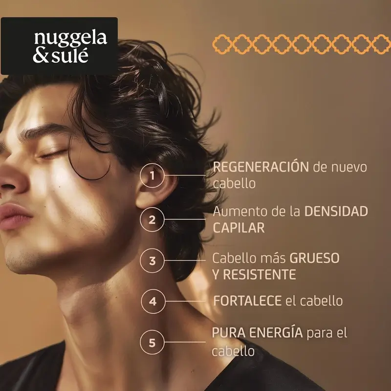 Tratamiento de choque para regenerar el cabello. Indicaciones • Falta de grosor y densidad • Alopecias crónicas: androgenética (masculina y femenina), areata incipiente • Cuero cabelludo con baja actividad folicular o tras tratamientos agresivos • Tras un tratamiento anticaída, para lograr un crecimiento más fuerte y denso Su acción se centra en reactivar folículos debilitados con dificultad para generar un cabello de calidad. 1. Reactiva los folículos para combatir la alopecia crónica. 2. Genera nuevos cabellos y mejora la cobertura del cuero cabelludo. 3. Restaura fuerza y grosor de la fibra capilar. Con Extracto de Maca Andina, Proteína Bioactiva y Glucógeno Marino